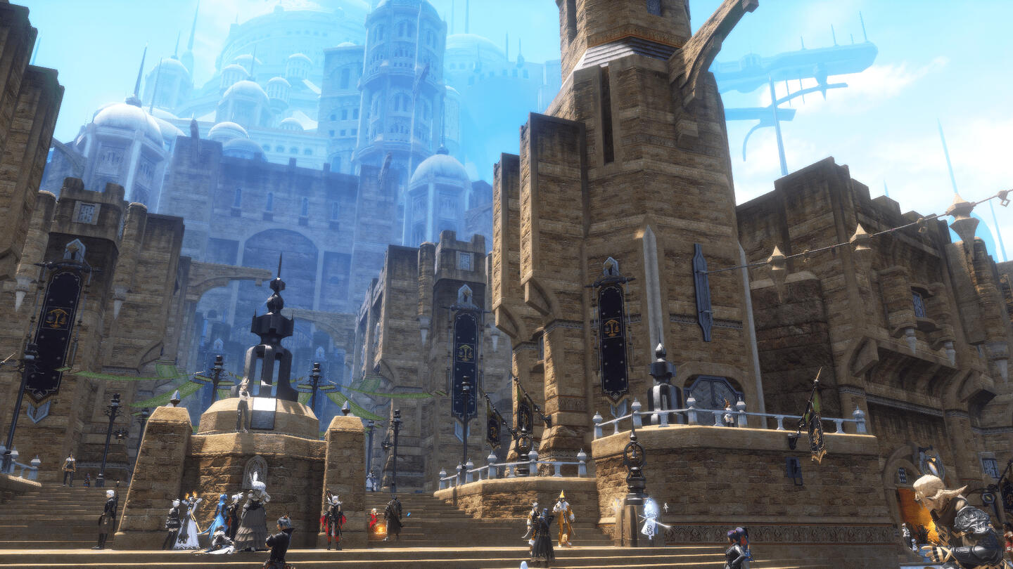 A gem in the sands, located in the center of the great deserts of Thanalan, north of the Sagolii Desert, Ul'Dah stands proud as a testament to the ability for Eorzeans to endure, and thrive under even the harshest of conditions, not unlike my own people.Ul'Dah is home to many landmarks and places of interest, though the one I've found most active is 'The Quicksand', a tavern that doubles as the city's Adventurers Guild. It's not often that I see any other place in the city as busy, not even the Aetheryte Plaza. It's often populated by two types of people... Those looking to rest, speak with friends, and meet new acquaintances with an empty chair at the table... And those looking to warm their beds for the night. I would normally not write about these things, but it felt worth noting. Something to be cautious about.Ul'Dah is often regarded as the prosperous center of trade in Eorzea, a place where any and all goods will one day pass through. However, to assume it is a paradise of riches would be, unfortunately, wrong. At the time of writing this, Ul'Dah is plagued by poverty and inequality, with a growing divide between the rich and those living day by day on the streets. It's an unfortunate outlook, though rumours have it that the Sultana is planning a multitude of ways to kickstart Ul'Dah's economy and make it the prosperous nation it once was. Only time will tell if these rumours come to life.